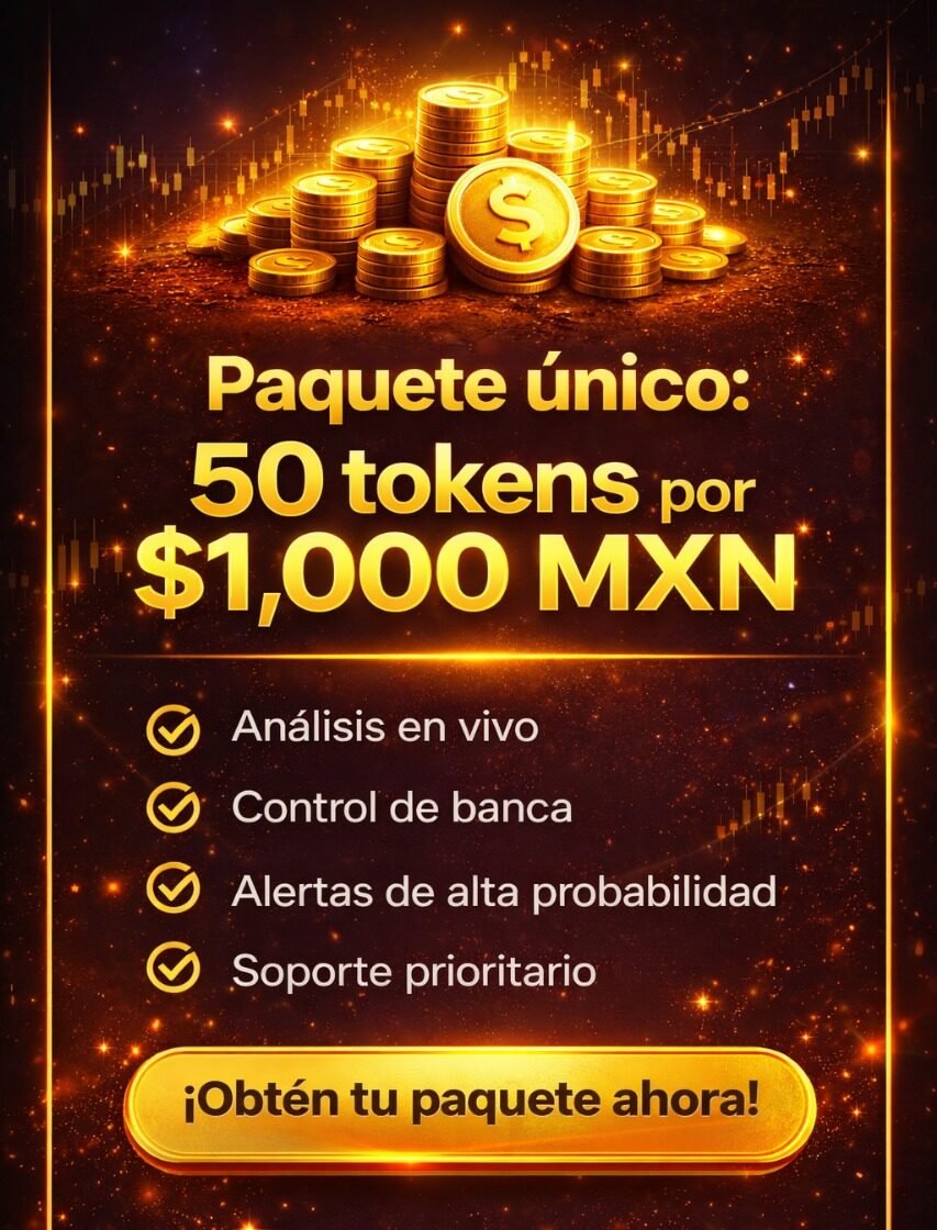 Membresía Única Predicciones estratégicas у alertas en vivo Cada token equivale a 1 predicción avanzada. Los tokens no son reembolsables. El servicio es de análisis y educación; no es casa de apuestas.